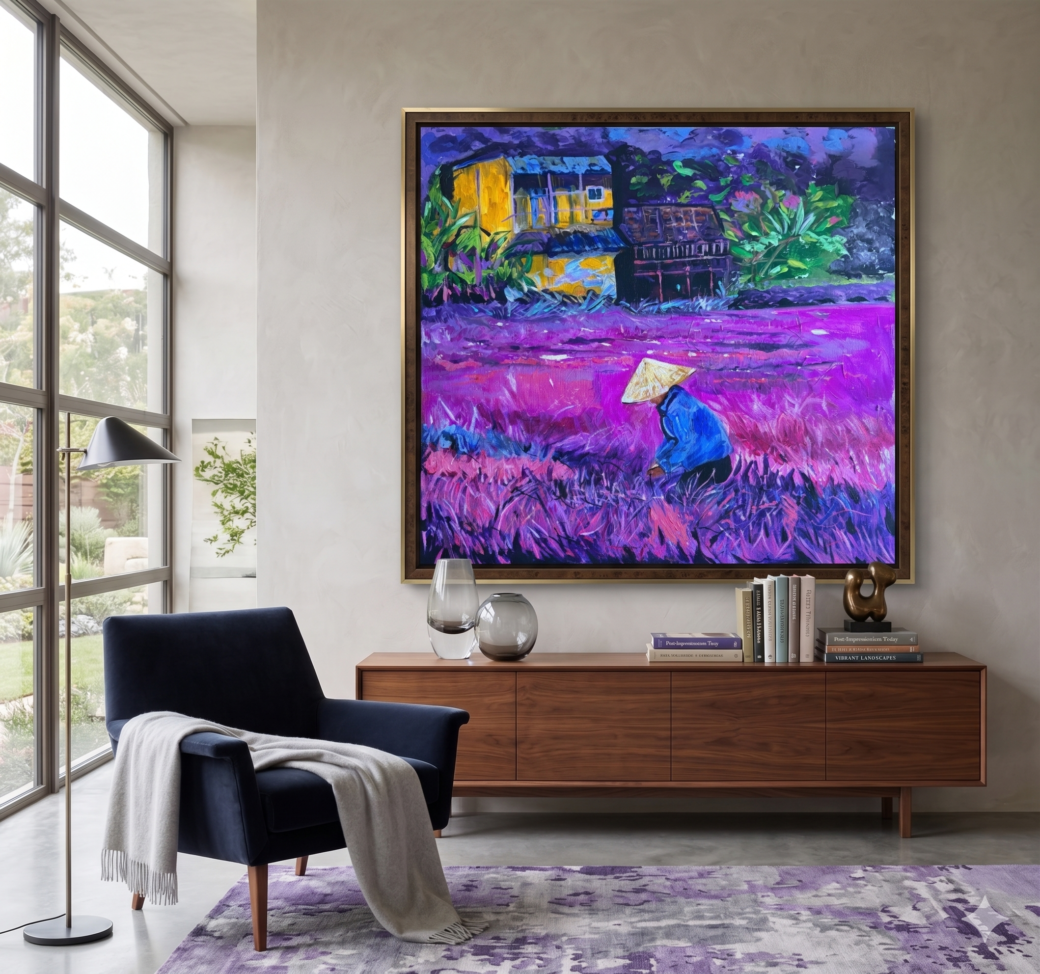 Perfect for collectors who appreciate contemporary impressionism, expressive color palettes, and storytelling through landscape. Shipping is separately calculated. 36×36